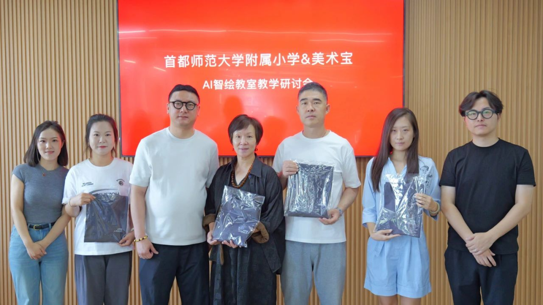 近日,学校教师代表赴美术宝公司,参与了AI智绘教室教学研讨会。研讨会以美术宝AI智绘教室宣传视频拉开序幕,系统展示了沉浸式教学场景。在课程产品展示环节,教师们详细了解了“神笔马良AI智绘教室”产品体系,认识到可以通过AI技术引导学生拓展艺术想象空间。现场同步展示了前期双方合作中产生的优质学生作品成果。教师们还参与了《AI艺术设计——T恤制作》实操体验,通过AI工具完成从创意设计到实物印制的全流程创作,并就技术应用与课程适配性提问交流。