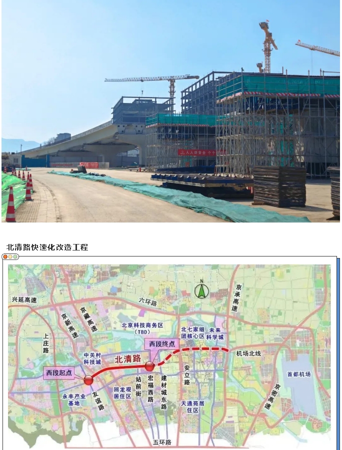 作为北京市重点建设项目北清路将从城市主干路“变身”为城市快速路,并在京藏高速节点建设北京最大的互通立交桥,有效缓解现况道路和区域交通拥堵带动中关村科学城北区高质量发展。