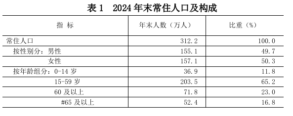 年末全区常住人口312.2万人,比上年末减少0.3万人。其中,常住外来人口104.3万人,占常住人口的比重为33.4%。常住人口出生率5.30‰,死亡率3.82‰,自然增长率1.48‰。