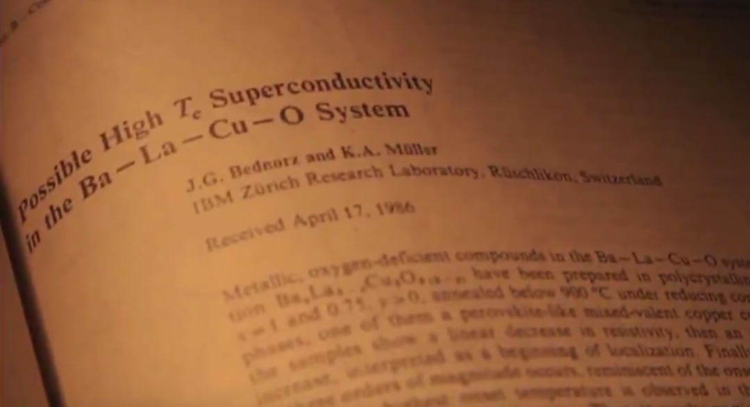 【贝德诺兹与缪勒于1986年4月发现钡镧铜氧化物的超导电性 】