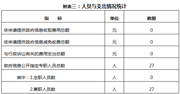 本机关从事政府信息公开工作的全职人员共2人,同上年相比,减少1人;兼职人员共0人,同上年相比,增加0人。