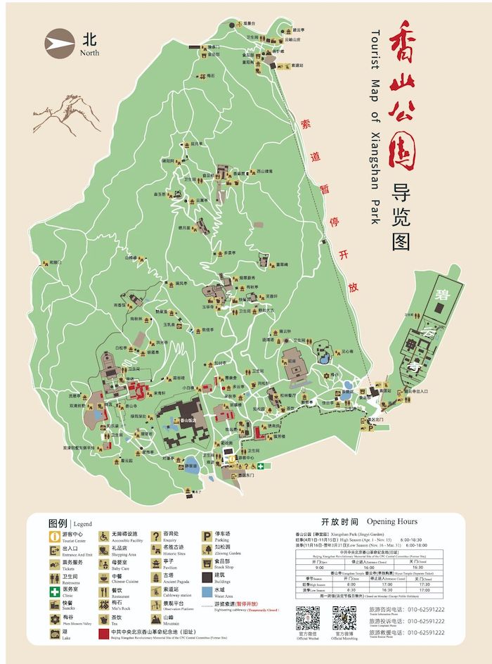 香山公园位于北京西郊,地势险峻,苍翠连绵,占地188公顷,是一座具有山林特色的皇家园林。景区内主峰香炉峰俗称“鬼见愁”,海拔575米。