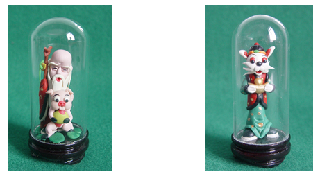 面塑源于民间的祭祀和节令风俗活动,是由“花供”演变过来的。“花供”是用各种彩色面粉捏制成的带有寓意的仙佛人物,花鸟鱼虫及各种动物形象的面食品,至今还在黄河流域盛行。潘大鸿自幼喜欢面塑。师从于山东济南面塑艺术大师何晓铮先生,其作品风格以卡通形象为主,追求民间、民俗的装饰特点,喜欢标新立异、别具一格、不拘泥于形式。