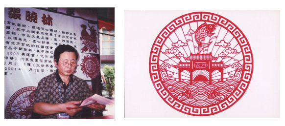 张晓林家传的北京民俗剪纸起源于民国初年。从第一代传人薛何氏算起,经过薛俊英、张晓林三代人传承,至今已有近百年的历史。其作品继承和发展了老北京剪纸的民俗风味,构思大气、造型粗犷、形象传神、寓意深刻。他创作的面积达90平方米的巨型团花剪纸《奥运之光照中华》,现被中国体育博物馆收藏。为了让这项传统民间艺术传承下去,他先后在数十个学校、社区教授剪纸,培养了近千名剪纸爱好者。