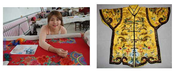 京绣又名“宫廷绣”或“宫绣”,是以北京为中心的刺绣产品的总称。清朝末年,老艺人梁枝跟随京城的刺绣大师学习京绣,后将技艺传承给后人,至今已有一百多年的历史。第五代传承人刘静琦十几岁跟随刺绣大师梁淑平学习刺绣技艺,从设计、绘图、刷版、挣布、刺绣直到成品,都是根据祖传的技法,纯手工制作。她的作品图案绢秀高雅,绣工精巧细腻,针法丰富精湛,极具观赏和收藏价值。