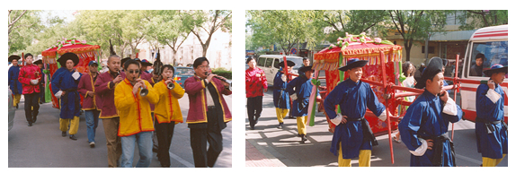据史料记载,轿子是东汉时的交通工具,后延用在结婚时新娘子坐喜轿嫁娶,在唐代逐渐普及。明清时期,老北京把姑娘坐喜轿出嫁视为明媒正娶的标志。因此,当时的喜轿行业最为兴旺,四九城都有专门向外租赁花轿、锣鼓、执事和彩衣的轿子铺。李连生师从徐场(1921—2007)、李顺(1926—2009),系统掌握了有关喜轿的全套婚俗礼仪,他的喜轿集众家之所长,并富有现代气息,深受老百姓喜爱。