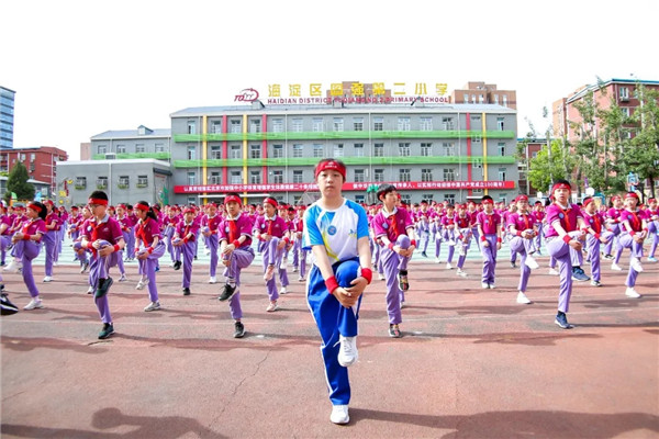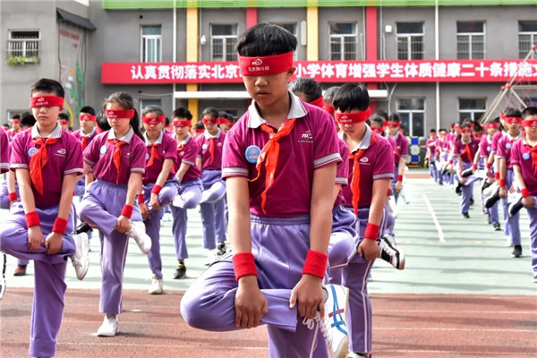 展示环节,同学们做起了学校自编课间操《我是北京脚斗娃》,他们随着音乐的节奏,动作整齐、张弛有度,体现出图强二小学子的“精气神”。