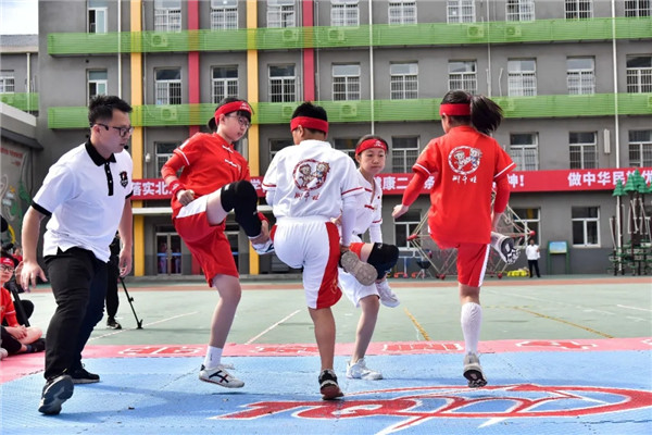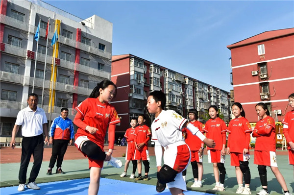 在北京脚斗士协会的帮助引领下,图强二小的体育教师们先参与培训,再由老师在学生中进行教授和普及,通过“体育课、课间操、社团活动”三者并举,“教、学、练、赛”相结合,在同学们中广泛推广。