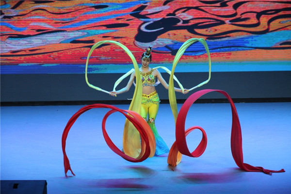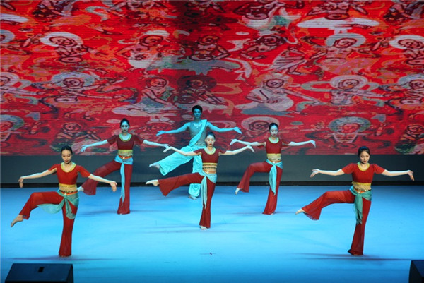 活动的后半段是精彩的敦煌伎乐舞展示,在雄浑遒劲的朗诵声中,几位嘉宾翩翩起舞,为观众带来了敦煌舞的第一课——《启示冥想》,优美的音乐、灵动的舞姿,柔软的身段,展示了敦煌舞蹈所特有的风格和韵律,一下子就把人们带入了敦煌文化的醇美意境之中。由两位男嘉宾带来的《伎乐护法三十六姿》则一一展示了三十六种伎乐护法姿态,仿佛脱胎于一幅幅曼妙的壁画,散发出浓浓的敦煌神韵,让观众充分领略到了敦煌男子舞蹈的手姿、站姿、脚位、步伐、舞姿以及运动规律。而其后的《飞天》更是绰约多姿,充满飘逸和洒脱之美。《反弹琵琶品》《燃灯踏焰》也是美轮美奂、各尽其美,在专业舞蹈演员的精彩演绎下,千年的舞姿如在眼前,沉睡的壁画变得灵动飞跃,一个眼神、一个步态、一个舞姿,都给人以非常美的感受。