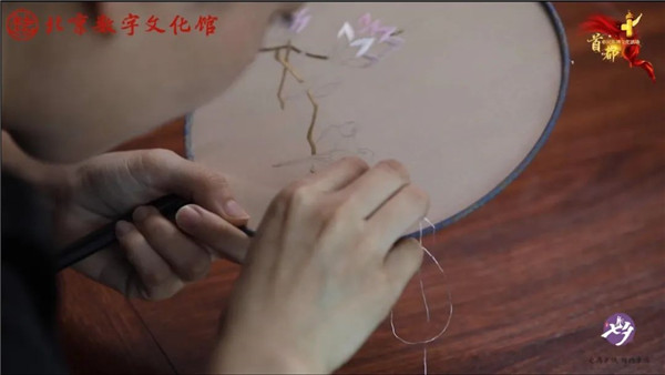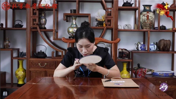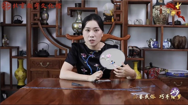 京绣,又称宫绣,是以北京为中心的刺绣产品的总称,是一门古老的中国刺绣工艺。明清时候开始兴盛,多用于宫廷装饰、服饰,用料讲究,技术精湛,格调风雅。在活动中,京绣传承人为我们讲解了如何制作一个团扇。