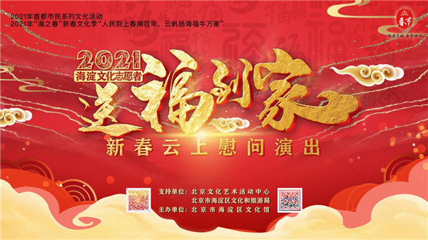 新春的脚步越来也近,年味儿也越来越浓郁。为满足“就地过年”的群众居家文化需求,为广大人民群众送去新春的祝福和问候,让群众足不出户就能感受到浓浓的年味儿,传递和谐社会正能量,充分展示海淀区建设国家公共文化服务示范区的丰硕成果,根据北京市文化志愿者中心及北京市海淀区关于新春系列文化活动的统一部署,在2021年新春来临之际,北京市海淀区文化馆特举办“送福到家乐 春牛耕作深”海淀区文化志愿者“送福到家”新春慰问活动。