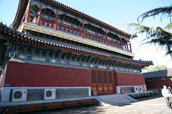 万寿寺中路七重殿,有山门、天王殿、大雄宝殿、万寿阁、大禅堂、御碑亭、无量寿佛堂、万寿楼等,大禅堂后建有三座假山,象征普陀、峨眉、清凉三山。假山上有观音、文殊、普贤三大殿,山后为御碑亭。乾隆曾三次在这里为其母祝寿。东路为