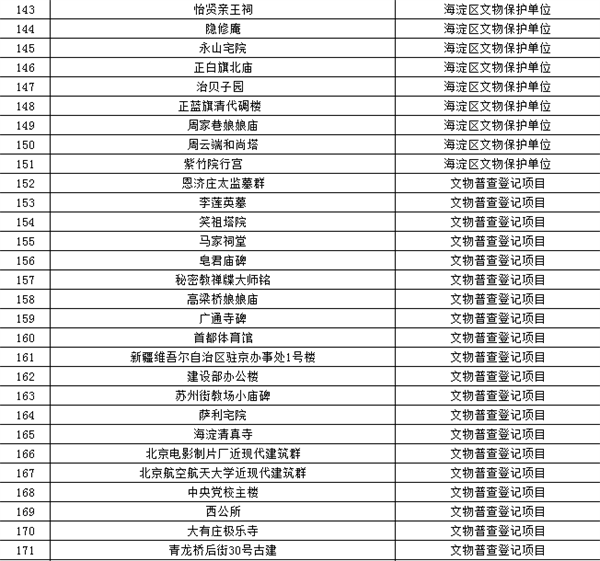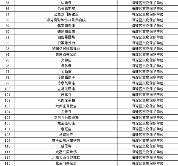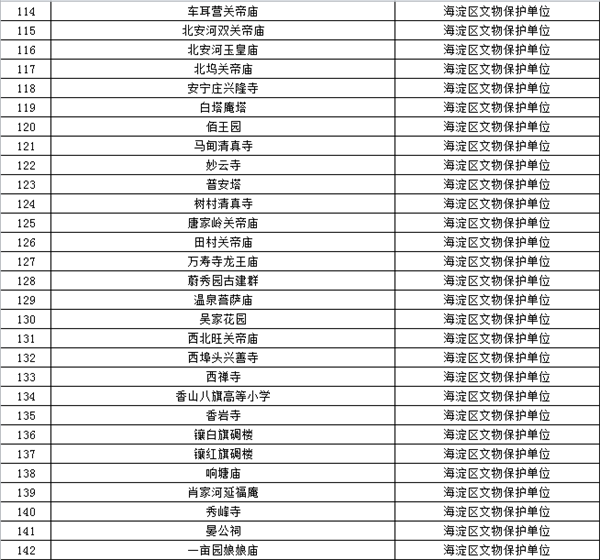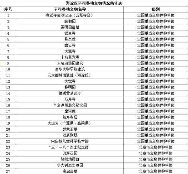 海淀区不可移动文物情况统计表(截至2022.04.22)
