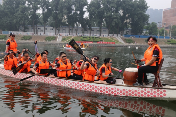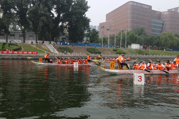 此次比赛共有来自海淀区政府、高校、高新企业单位的15支代表队,近300人参与,分别是中体创新代表队、莱顿生物代表队、维尔口腔代表队、大唐环境代表队、中央民族大学代表队、沈忆医疗代表队、纳通生物科技代表队、冬泳俱乐部代表队、曙光街道代表队、威联德骨科代表队、竹映一传媒代表队、外研社代表队、海淀社体代表队、盈月投资代表队和北京建筑大学代表队。随着区文明办李恺彦主任的鸣锣开赛,一艘艘龙舟如同离弦的箭,鼓声、号子声、欢呼声此起彼伏,大家在激烈的比赛中展开精彩纷呈的对阵角逐,在水面上同舟共济,奋勇争先,共同传承中国传统文化的精神。在端午节前夕,一起享受划龙舟带给大家的青春与激情。最终维尔口腔代表队、中体创新代表队和北京建筑大学代表队分获一、二、三名,中央民族大学代表队、沈忆医疗代表队和冬泳俱乐部代表队取得四、五、六名。