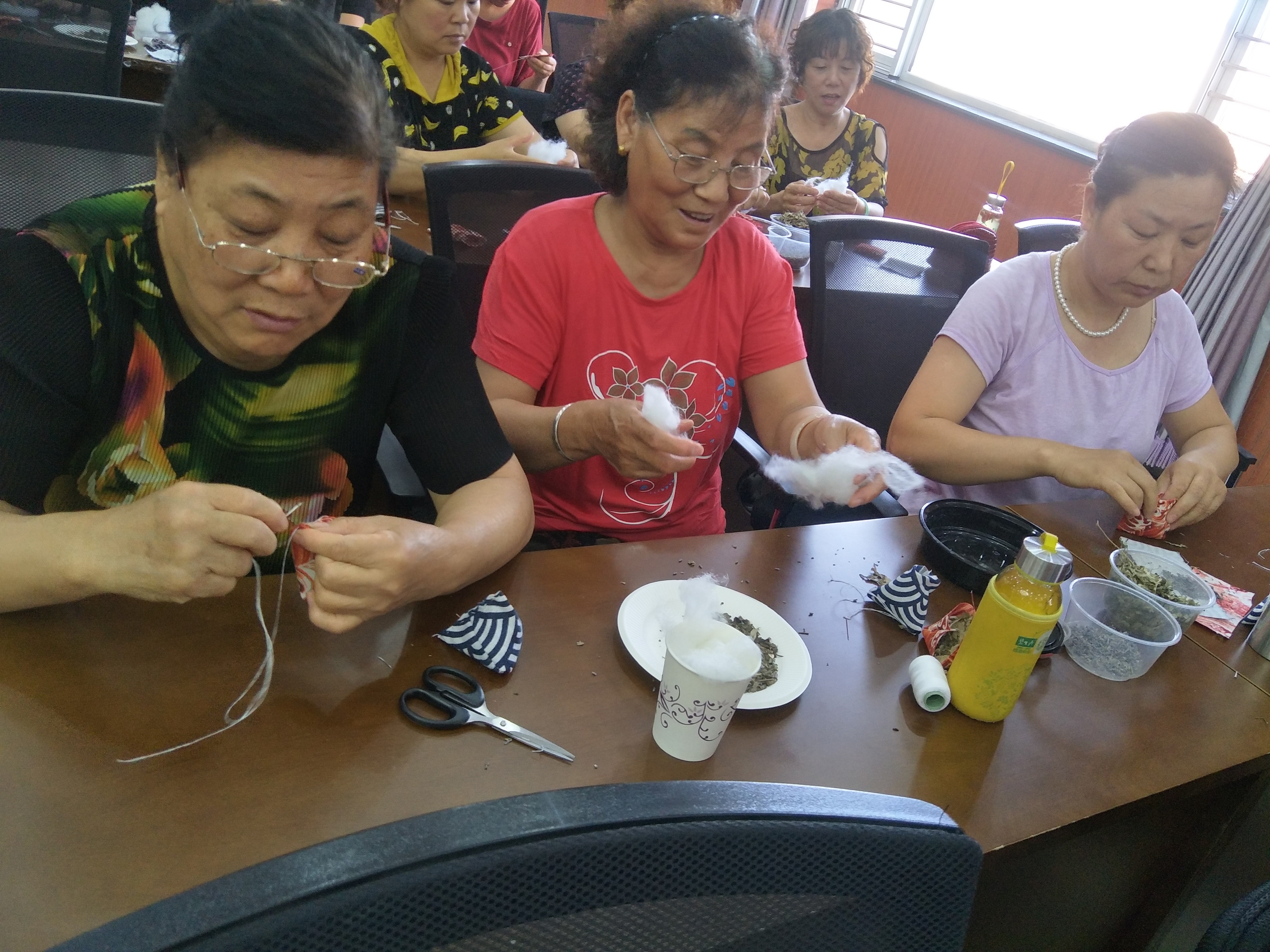 镇文化服务中心在六郎庄社区开展了端午香囊和彩绳手作活动。