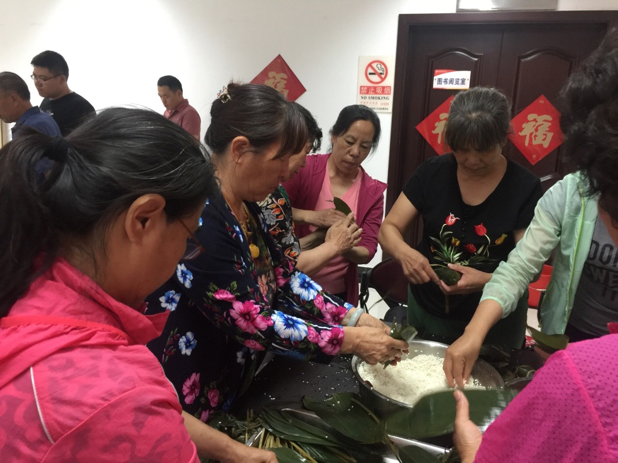 功德寺社区组织社区居民一起体验有趣的包粽子活动。参加活动的居民们个个手法娴熟,绿色的粽叶在他们手中翻飞旋转,洁白的糯米被紧紧包裹在粽叶中,再经过压紧、扎绳,一个个精巧的粽子就诞生了。