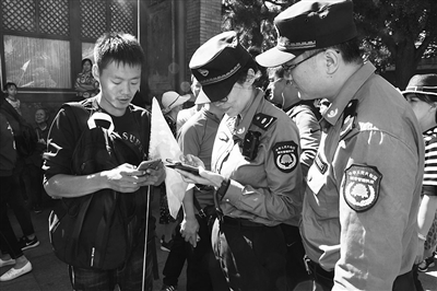 9月21日,区城管直属执法队在颐和园东门,检查了景区周边及沿线的环境秩序,重点对非法散发的小广告、无证导游、无运营自治车辆、无照经营、“门前三包”责任区环境脏乱、擅自粘贴广告等环境秩序问题进行治理。