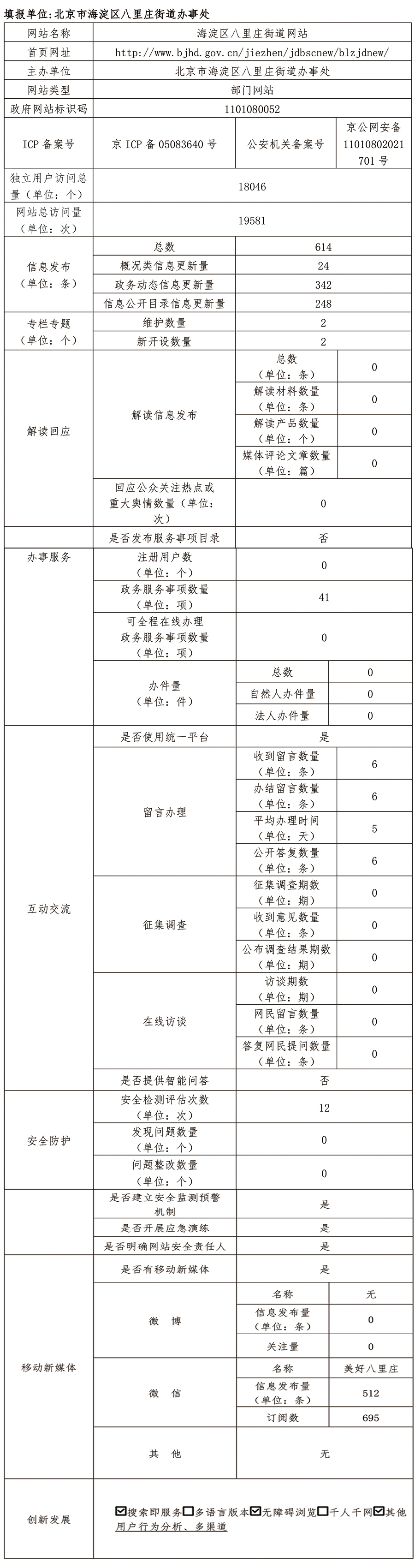 北京市海淀区八里庄街道办事处网站工作年度报表(2017年度)