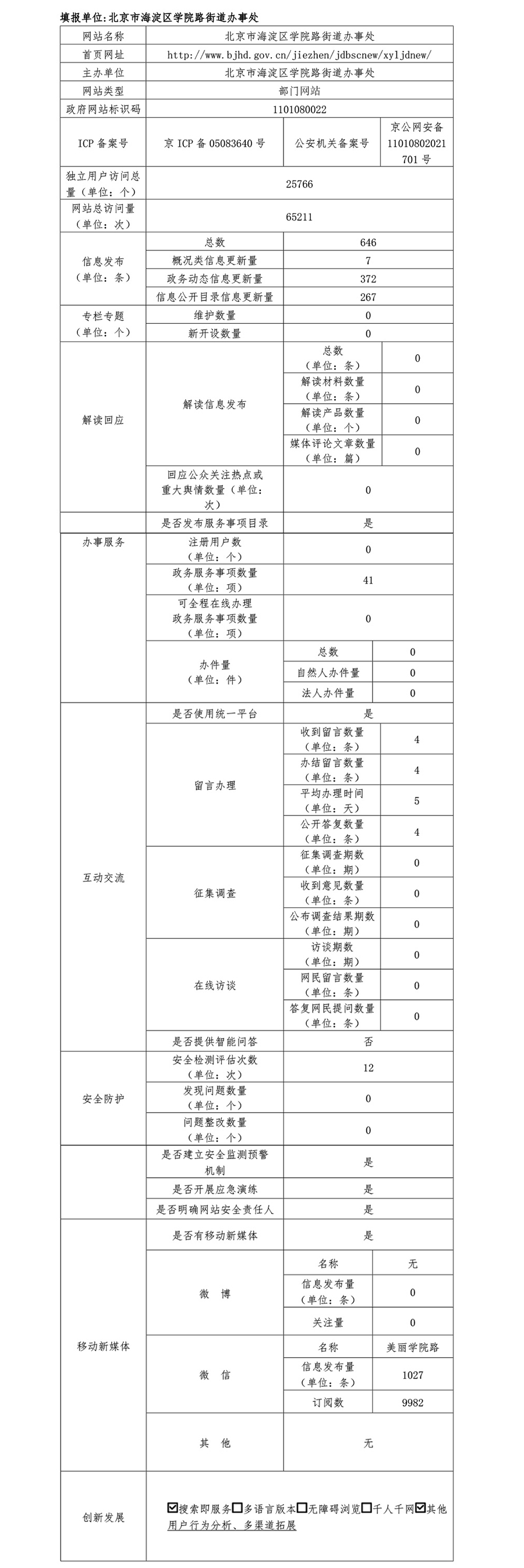 北京市海淀区学院路街道办事处网站工作年度报表(2017年度)