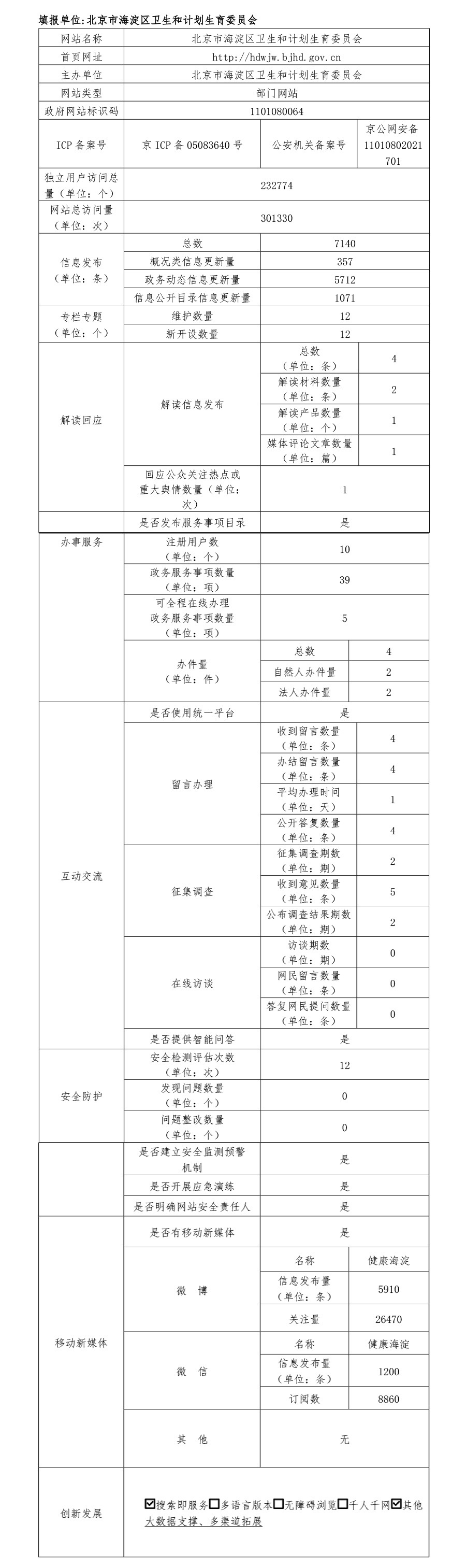 北京市海淀区卫生和计划生育委员会(公共委)网站工作年度报表(2017年度)