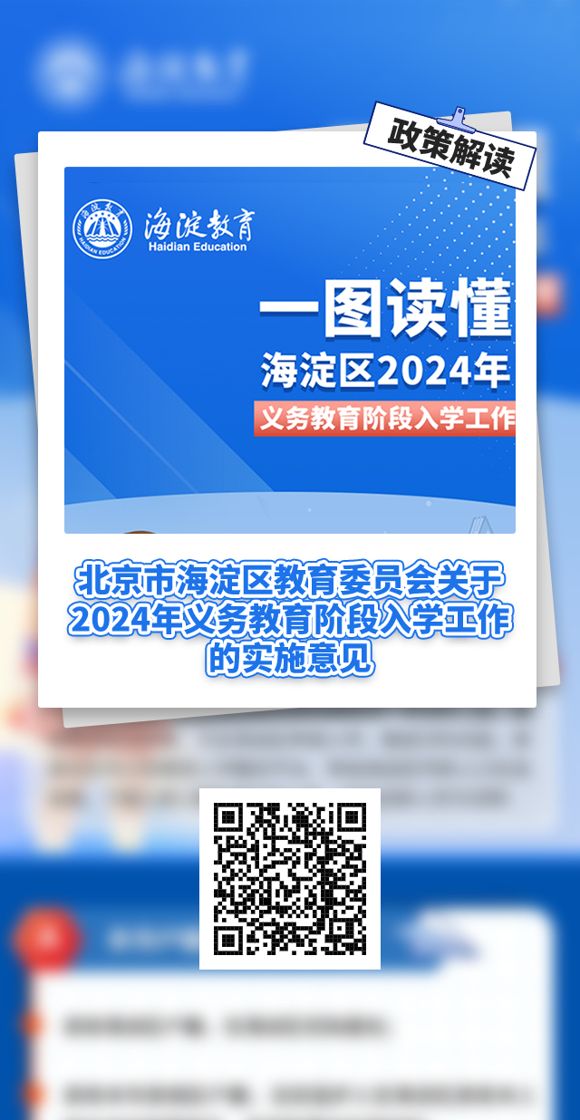 北京市海淀区教育委员会关于2024年义务教育阶段入学工作的实施意见的动画解读
