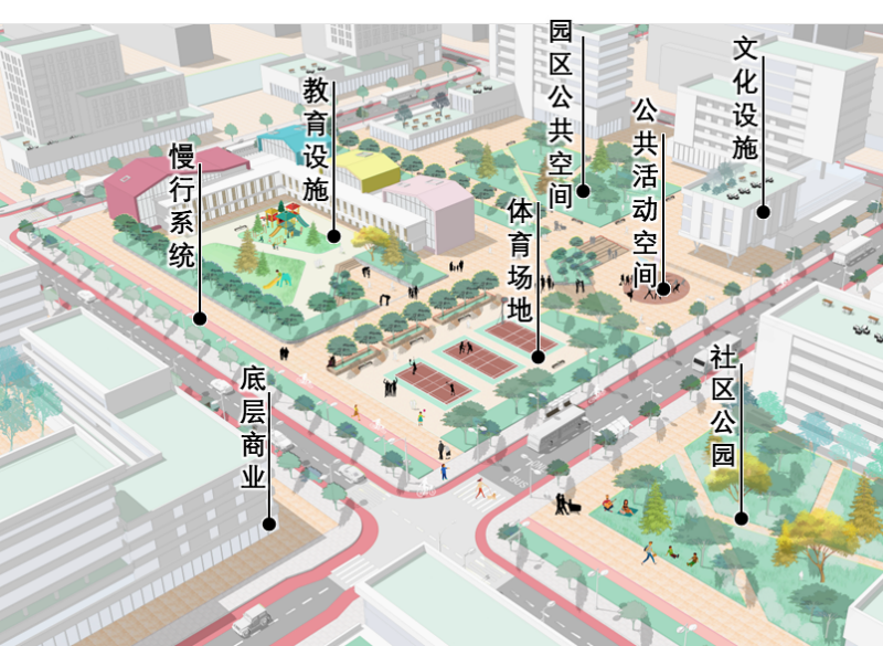 推动完善产业园区配套服务设施,鼓励在园区周边建设科创服务配套设施,同步补充区域三大设施、绿地和道路用地,完善城市功能,引导技术、人才集聚;结合人工智能创新街区内低效产业园更新,鼓励新建或改造升级共享会议室、共享展厅、路演厅以及配套商务服务设施,配套建设体育公园、屋顶花园等休闲场景,为创新人群提供高品质公共交流空间。在科学城北区等地区打造开放式园区,突破传统产业园区的封闭模式。
