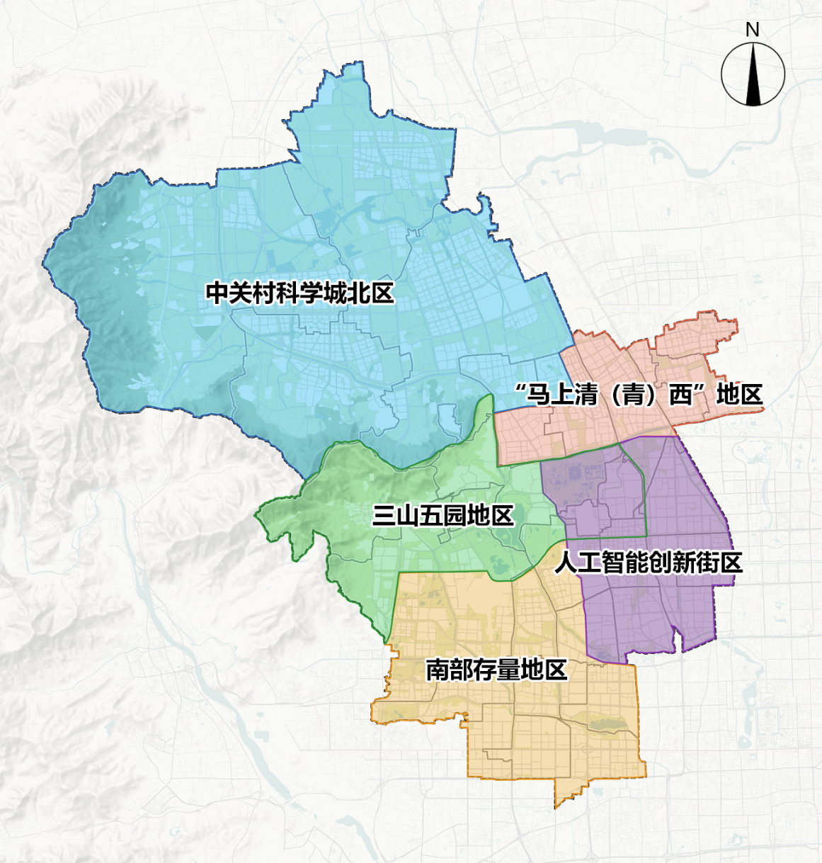 针对人工智能创新街区、三山五园地区、“马上清(青)西”地区、南部存量地区和科学城北区等地区不同特点,分片区强化工作要点。